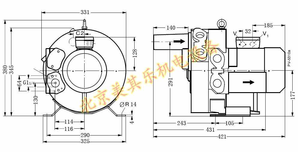 4GH 320/1.5kw高壓鼓風機側(cè)面圖
