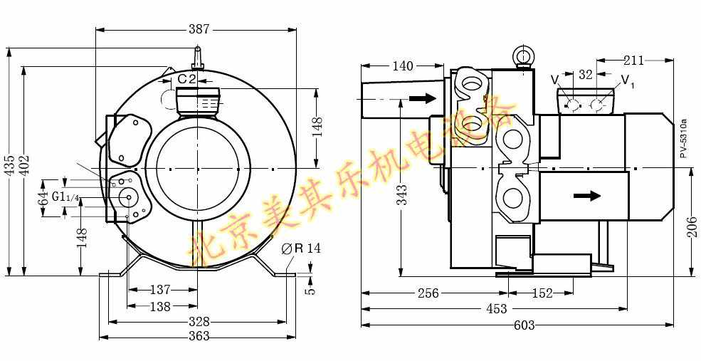 4GH520/4kw高壓鼓風(fēng)機(jī)尺寸圖: