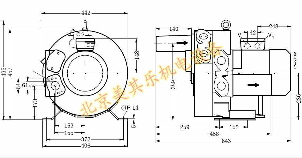 4GH 620/5.5kw高壓鼓風(fēng)機(jī)側(cè)面圖