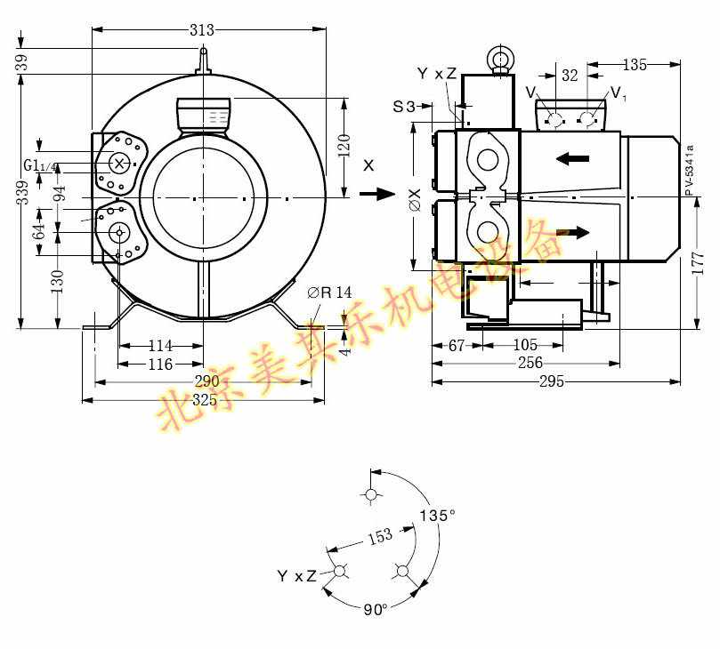 4GH310/850w高壓鼓風(fēng)機尺寸圖:單位mm