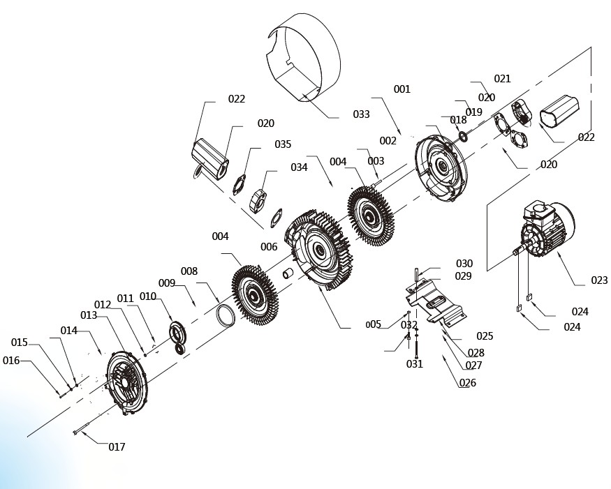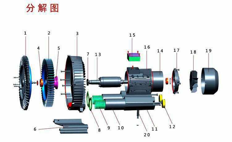 電機部分就不必多說了,前泵體的組成部分有,葉輪、泵體、中泵體、軸套筒、軸承、軸承支架、墊片、油封、泵蓋、消聲器整體、底座及若干螺絲等。