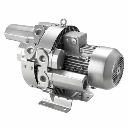 工作原理:葉輪轉(zhuǎn)動時,由于離心力的作用,風向標促使氣體向前向外運動,從而形成一系列螺旋狀的運動。葉輪刀片之間的空氣呈螺旋狀加速旋轉(zhuǎn)并將泵體之外的氣體擠入(由吸氣口吸入)側(cè)槽,當它進入側(cè)通道以后,氣體被壓縮,然后又回復到葉輪刀片間再次加速旋轉(zhuǎn)。當空氣沿著一條螺旋形軌道穿過葉輪和側(cè)槽時,每個葉輪片增加了壓縮和加速的程度,隨著旋轉(zhuǎn)的進行,氣體的動能增加,使得沿側(cè)通道通過的氣體壓力進一步增加。當空氣到達側(cè)槽與排放法蘭的連接點,氣體即被擠出葉片并通過出口消聲器排出泵體。