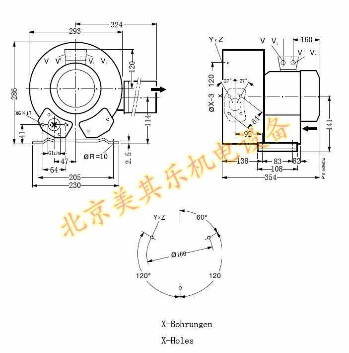 850w雙段高壓鼓風機尺寸圖: