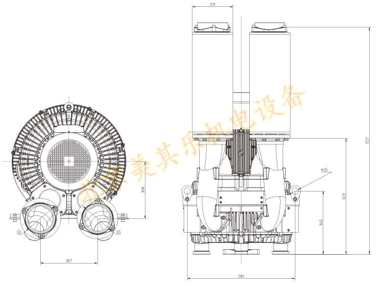 2GH940鼓風(fēng)機(jī)尺寸圖: